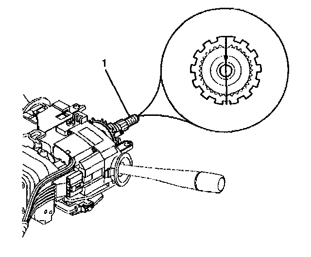 1. Align the block tooth on the steering column shaft assembly (1) to the 12 o'clock position.
