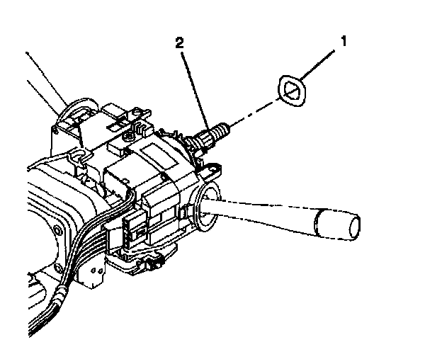 3. Install the wave washer (1) onto the steering column shaft assembly (2).