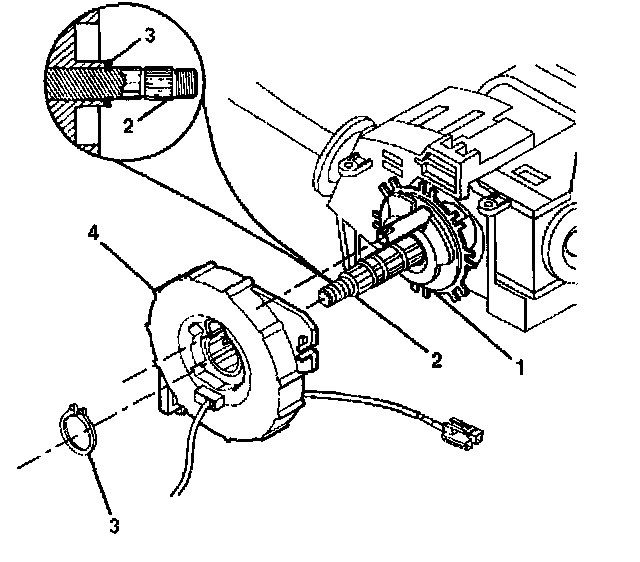 6. Slide the new inflatable restraint steering wheel module coil (4) onto the steering column shaft assembly (2).
