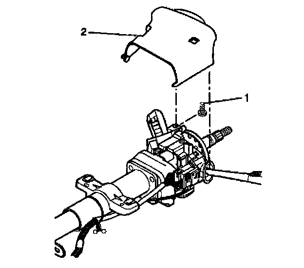 1. Install the upper trim cover (2) onto the steering column. Install 1 TORX head screw (1) into the upper trim cover (2).