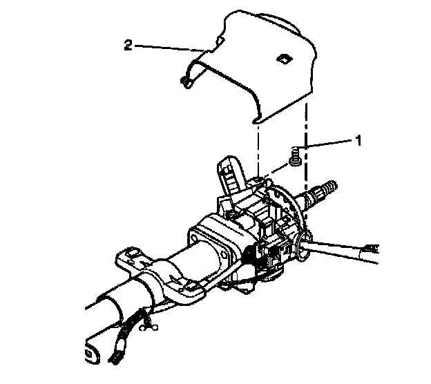 7. If necessary, remove 1 TORXS head screw (1) from the upper trim cover (2). If no screw is present, remove the upper trim cover (2).