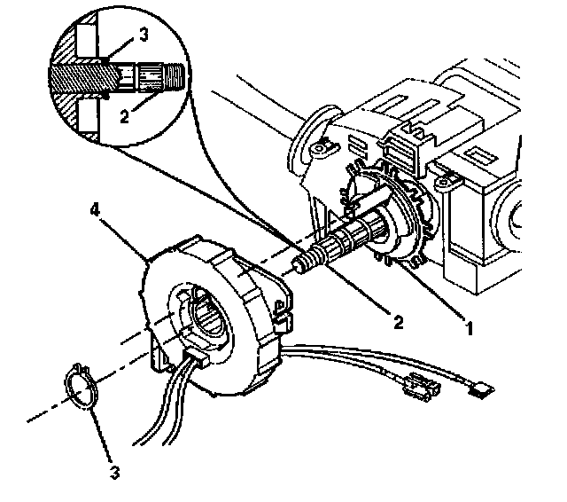 6. Slide the new inflatable restraint steering wheel module coil (4) onto the steering column shaft assembly (2).