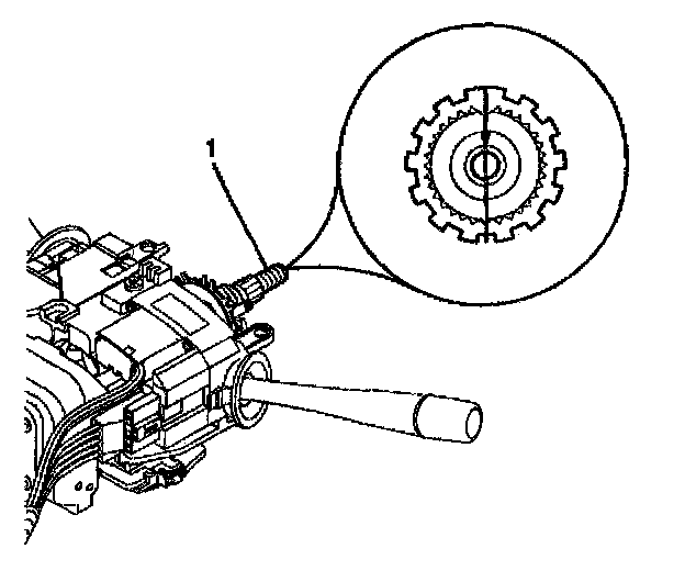 - The block tooth (1) of the steering shaft assembly is in the 12 o'clock position.