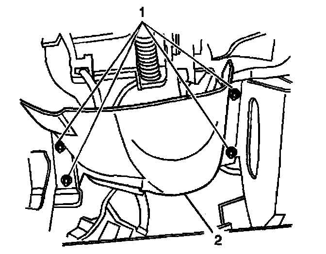 2. Remove the knee bolster. Refer to Knee Bolster Replacement in Instrument Panel, Gauges and Warning Indicators.