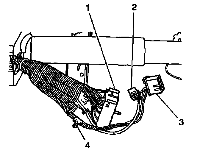 5. Install the wiring harness retaining (4) pin to the instrument panel.