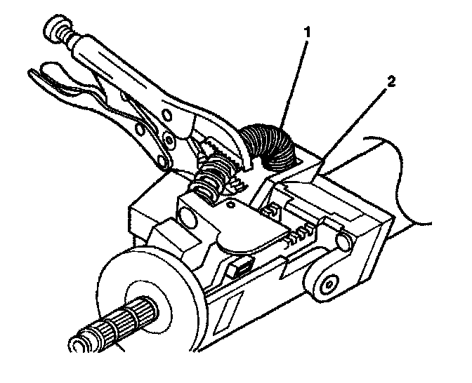 Caution: The It spring and the spring guide are under pressure. The tilt spring and the spring guide may become a projectile. Secure the spring with locking pliers during removal. Secure the spring with locking pliers during installation. Bodily injury may result during removal and installation of the tilt spring and the spring guide. Always use caution during removal and installation of the tilt spring and the spring guide.
