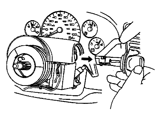 8. Remove the ignition lock cylinder by pulling the ignition lock cylinder away from the steering column.
