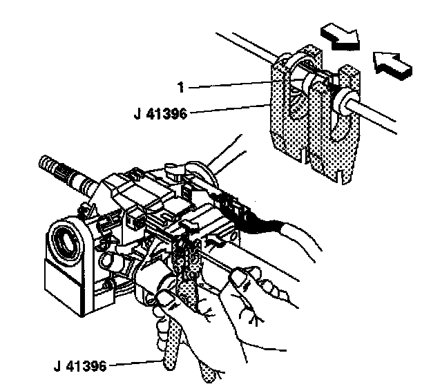 16.5. Lock the adjuster ring (1) securely in place on the park lock cable assembly with J 41396.