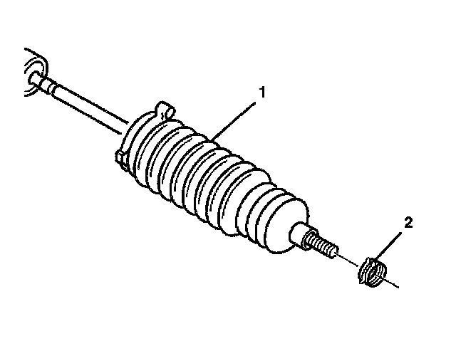 9. Install the tie rod end clamp (2) onto the rack and pinion boot (1).