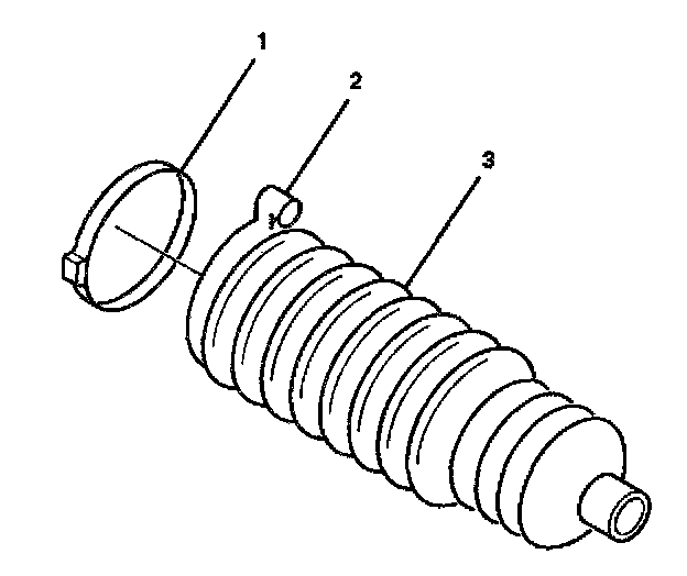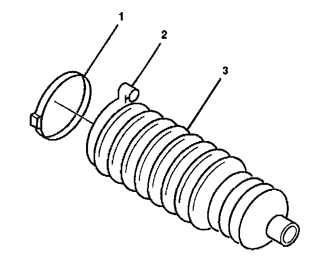 Important: The rack and pinion boot (3) must not be twisted, puckered or out of shape in any way. If the rack and pinion boot (3) is not shaped properly, adjust the rack and pinion boot (3) by hand before installing the boot clamp.