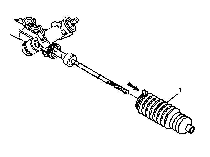 6. Remove the rack and pinion boot (1) and the breather tube, if present, from the rack and pinion gear assembly.