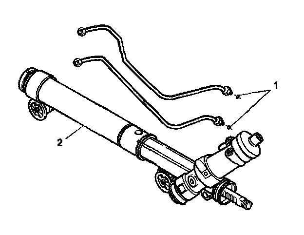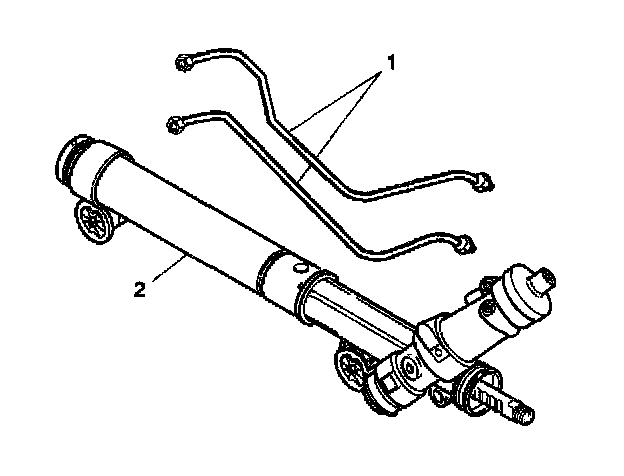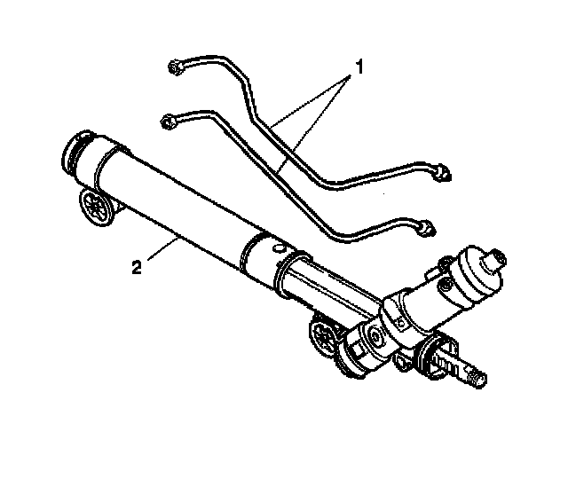 3. Remove both cylinder line assemblies (1) from the rack and pinion gear assembly (2).