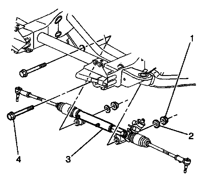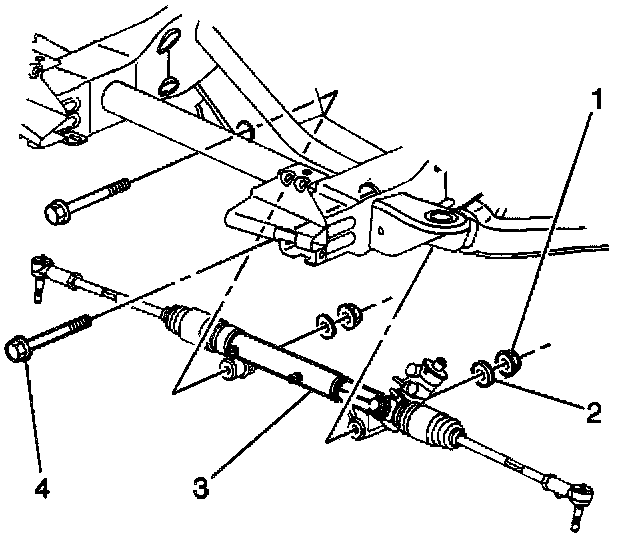 1. Install the rack and pinion assembly (3) into the vehicle.