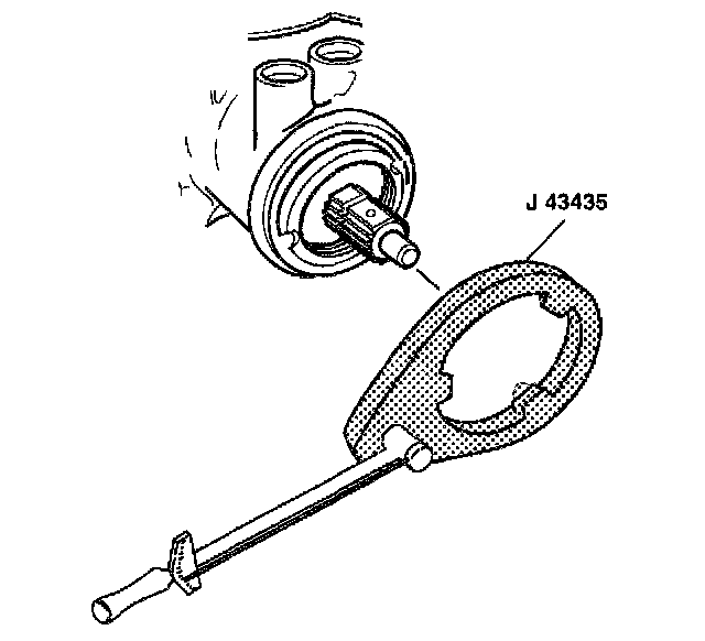 2. Remove the coupling shield retainer and the locknut from the steering gear housing using J 43435 and a torque wrench.