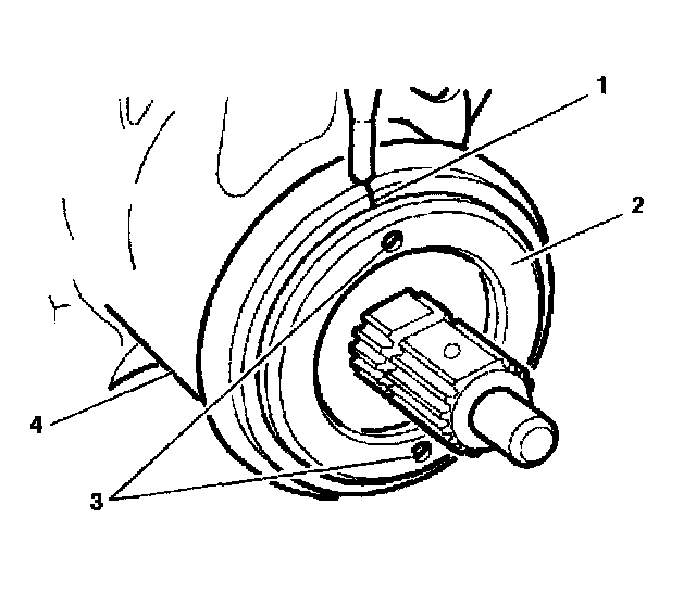 4. Place an index mark (1) on the steering gear housing (4) parallel with one of the holes (3) in the adjuster nut assembly (2).