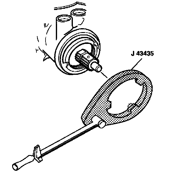 2. Remove the coupling shield retainer and the lock nut from the steering gear housing using J 43435 and a torque wrench.