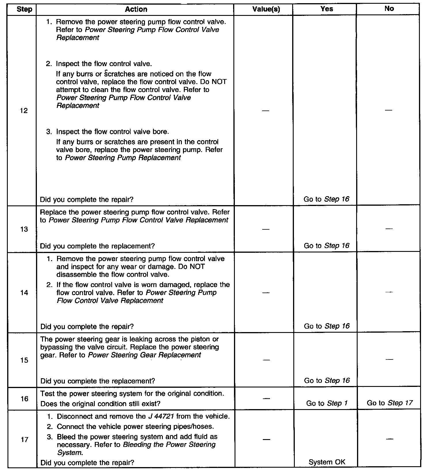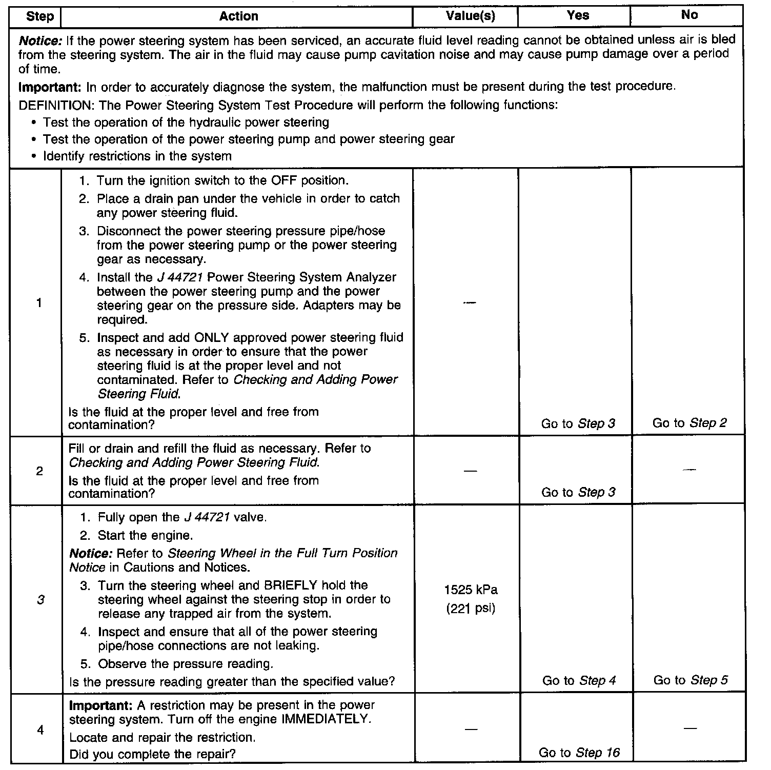 Power Steering System Test Procedure