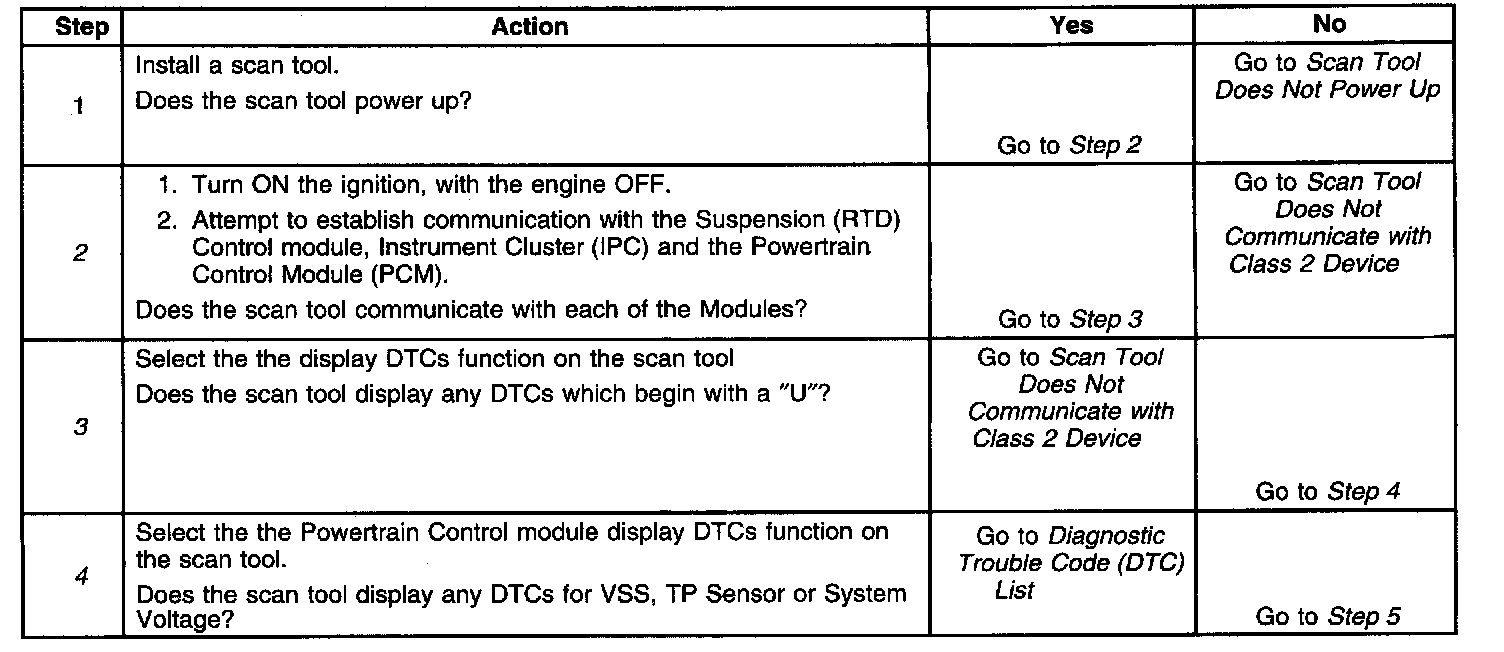 2. Lack of communication may be due to a partial malfunction of the class 2 serial data circuit or due to a total malfunction of the class 2 serial data circuit. The specified procedure will determine the particular condition.
