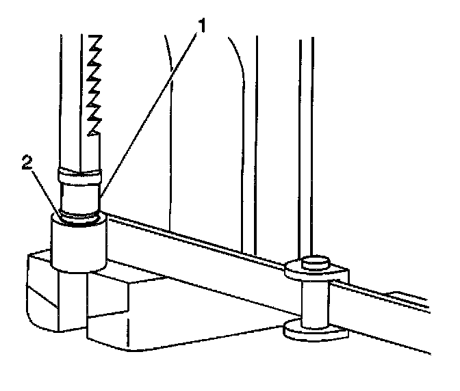 1. Apply rubber lubricant to the bushing (1) and spring eye (2).