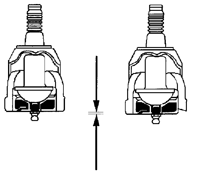 6.1. Inspect by sight the lower ball joint for wear. The position of the housing into which the grease fitting is threaded indicates wear. This round housing projects 1.27 mm (0.050 inch) beyond the surface of the lower ball joint cover on a new ball joint. Under normal wear, the surface of the lower ball joint housing retreats inward very slowly.