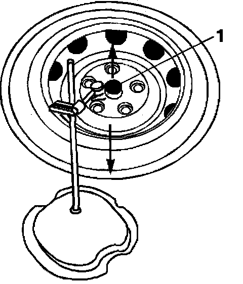 5.1. Position the J8001 dial indicator against the lowest outboard point on the wheel rim.