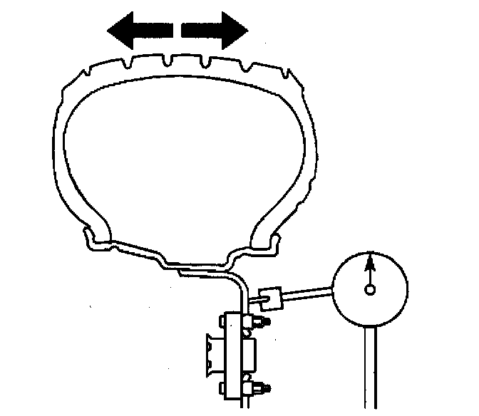 The following procedure describes how to inspect the wheel bearing/hub for excessive looseness. If you are inspecting the wheel bearing/hub for excessive runout, refer to Tire and Wheel Assembly Runout Measurement -On-Vehicle.
