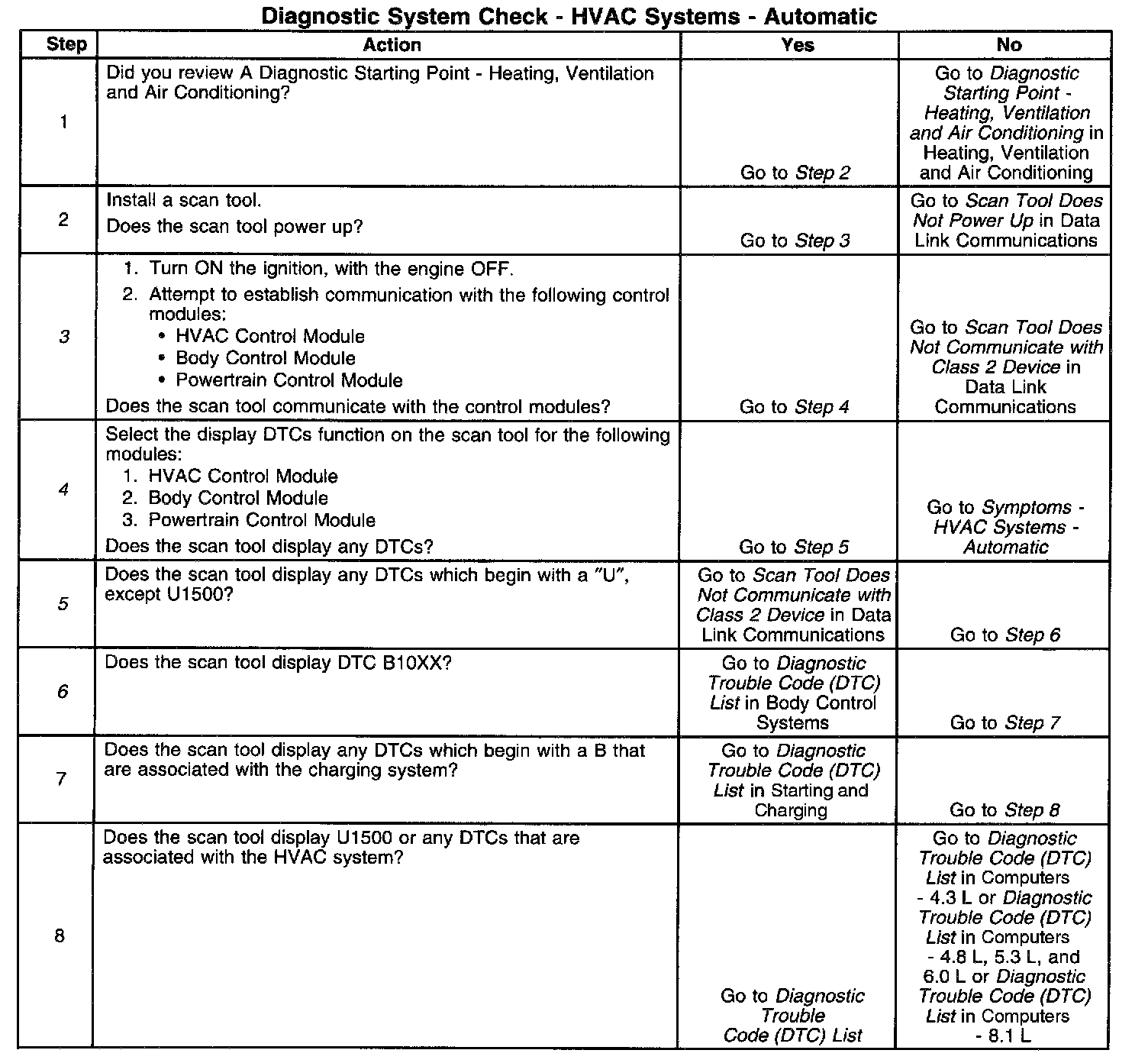 4. Determine if the HVAC Control Module, Body Control Module or Powertrain Control Module have set DTC's which may affect HVAC operation are present.