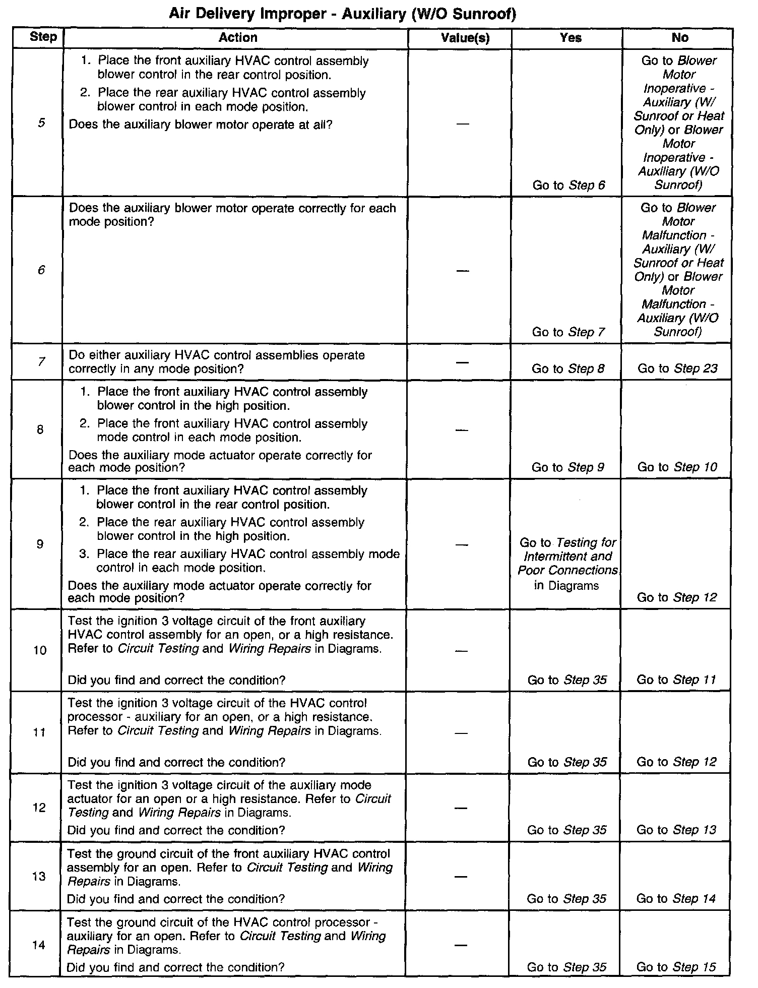 5. This step tests for auxiliary blower motor that does not operate from the rear auxiliary HVAC control assembly regardless of the desired blower motor speed.