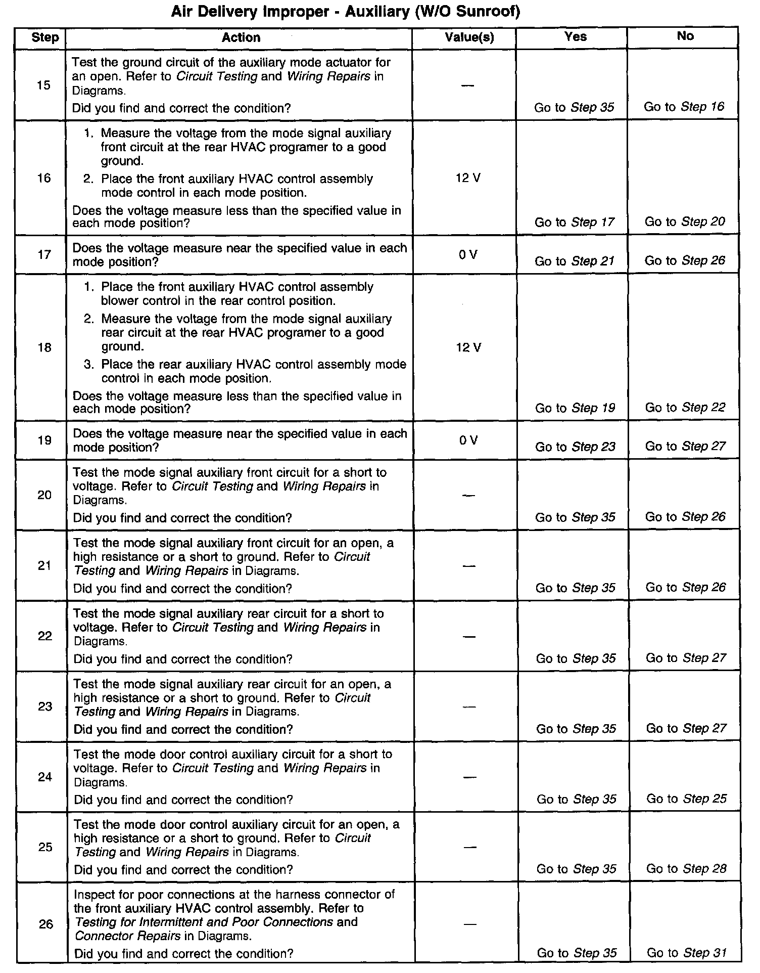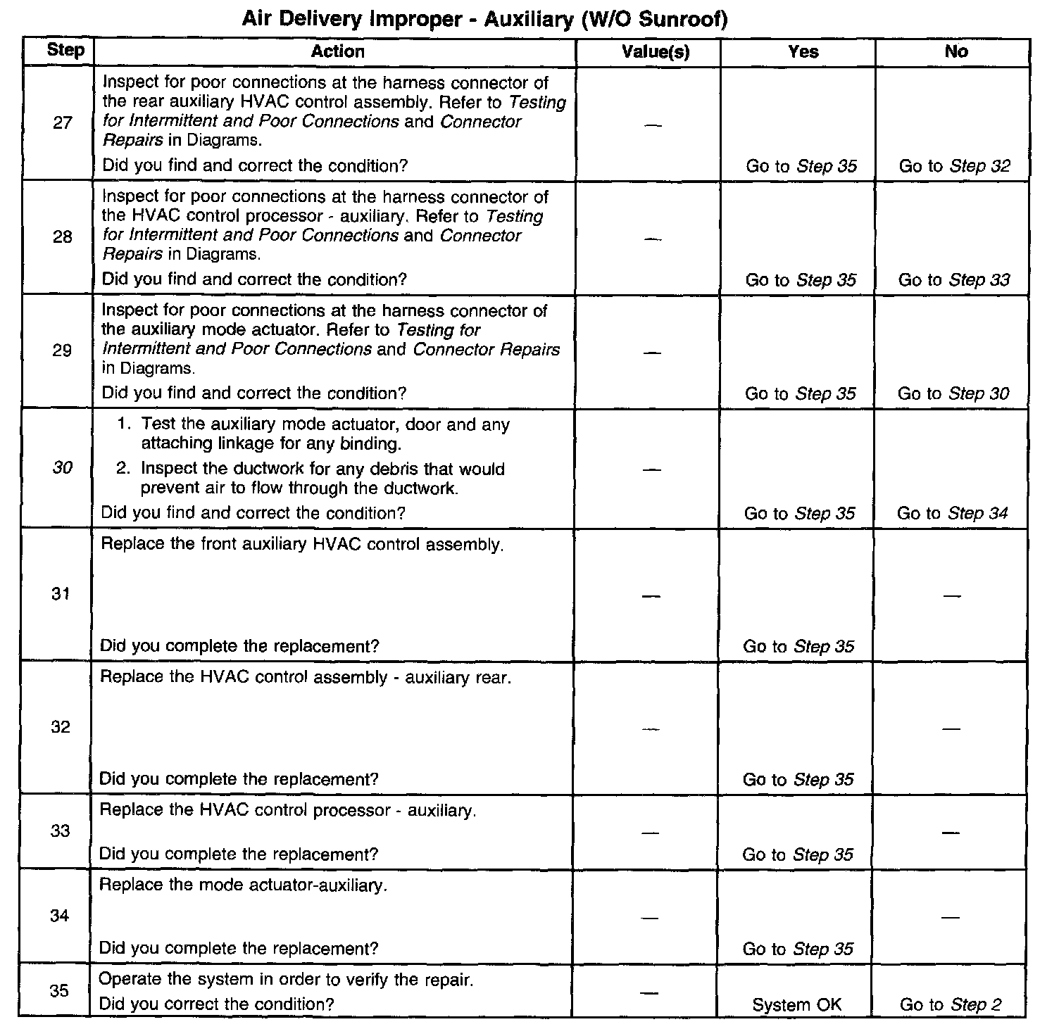 7. This step tests for an inoperative auxiliary mode actuator in one mode position(s) or in the wrong mode position(s) from either auxiliary HVAC control assemblies.