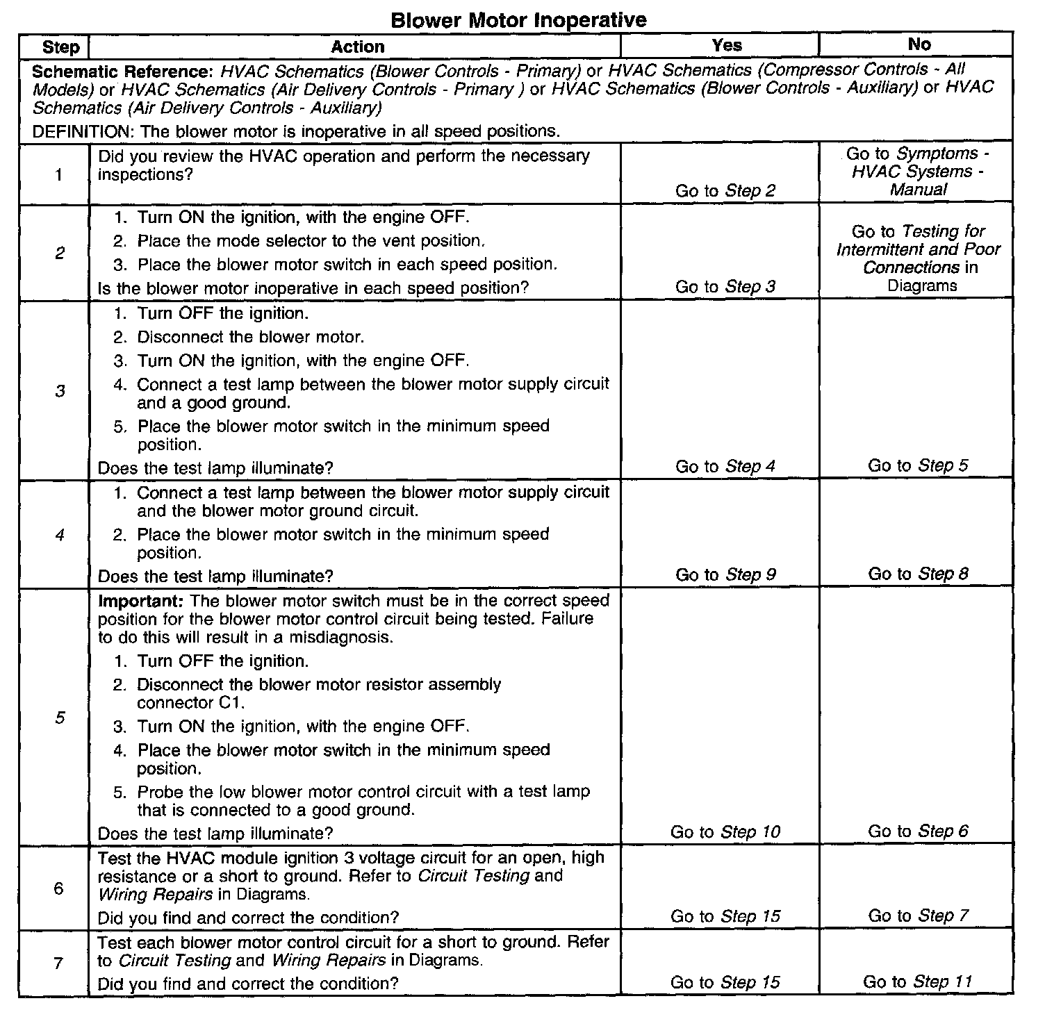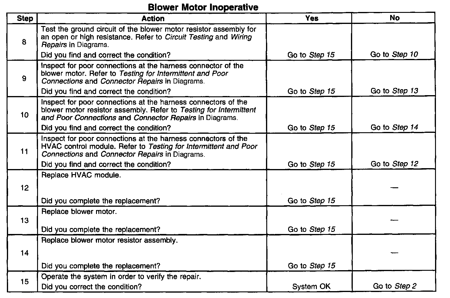 The number(s) below refer to the step number(s) on the diagnostic table.