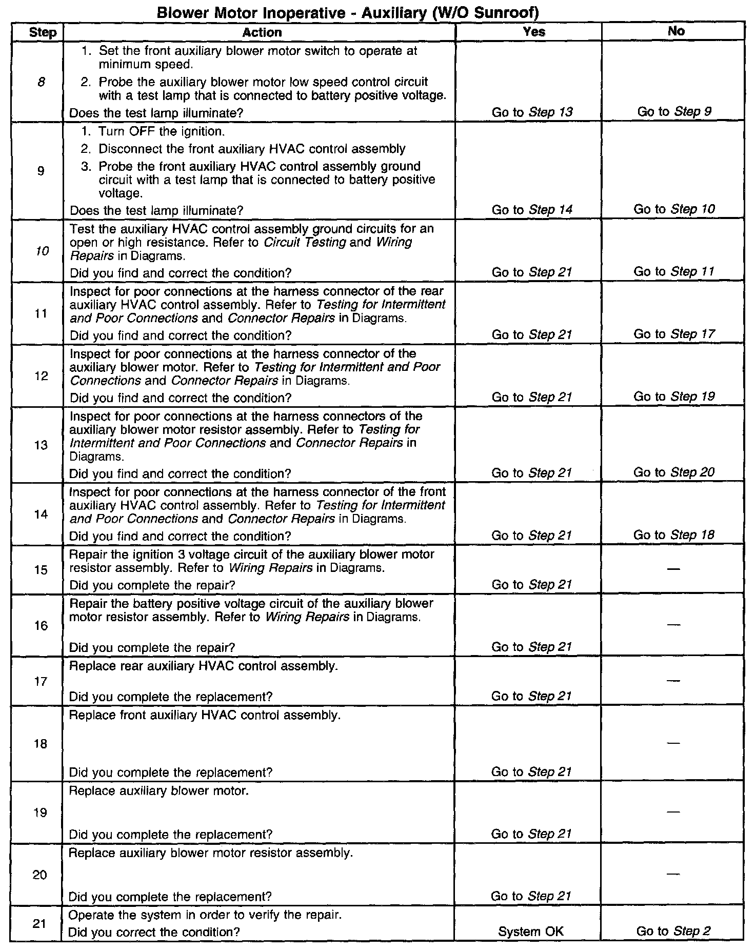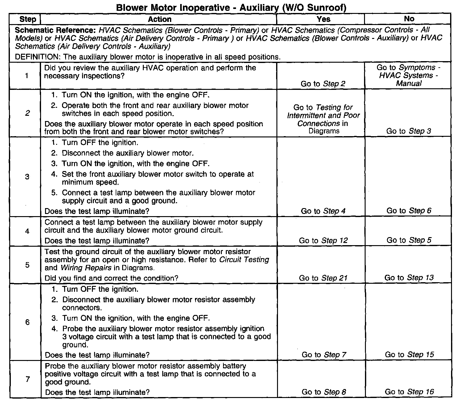 2. This step tests for auxiliary blower motor operation in any speed setting.