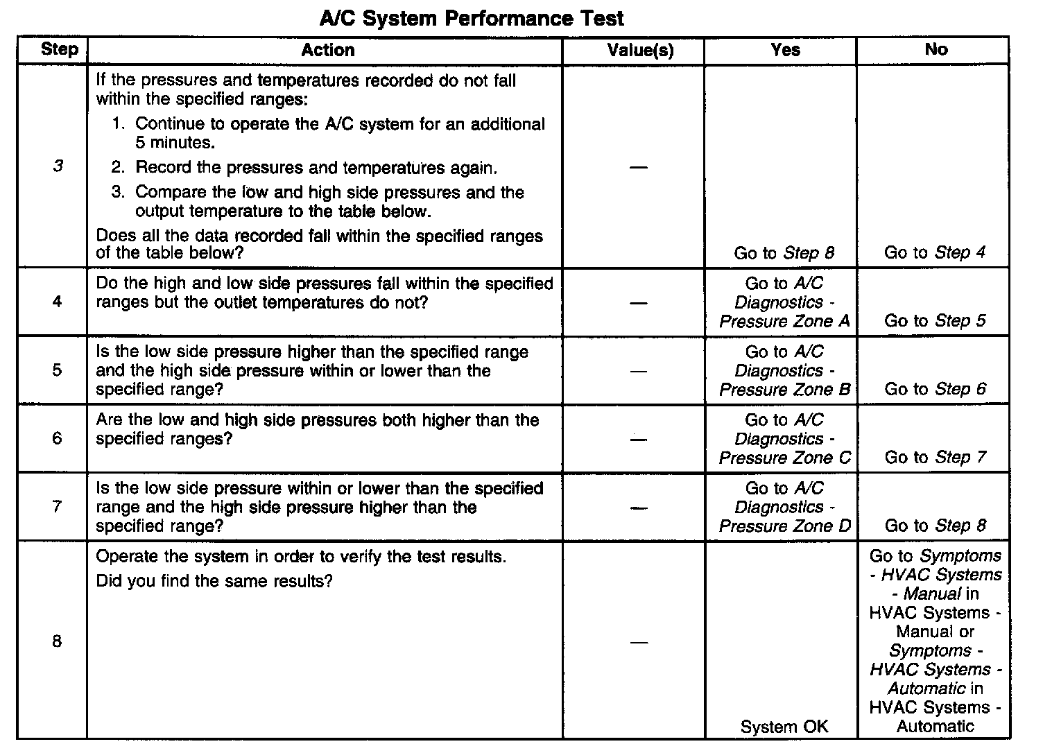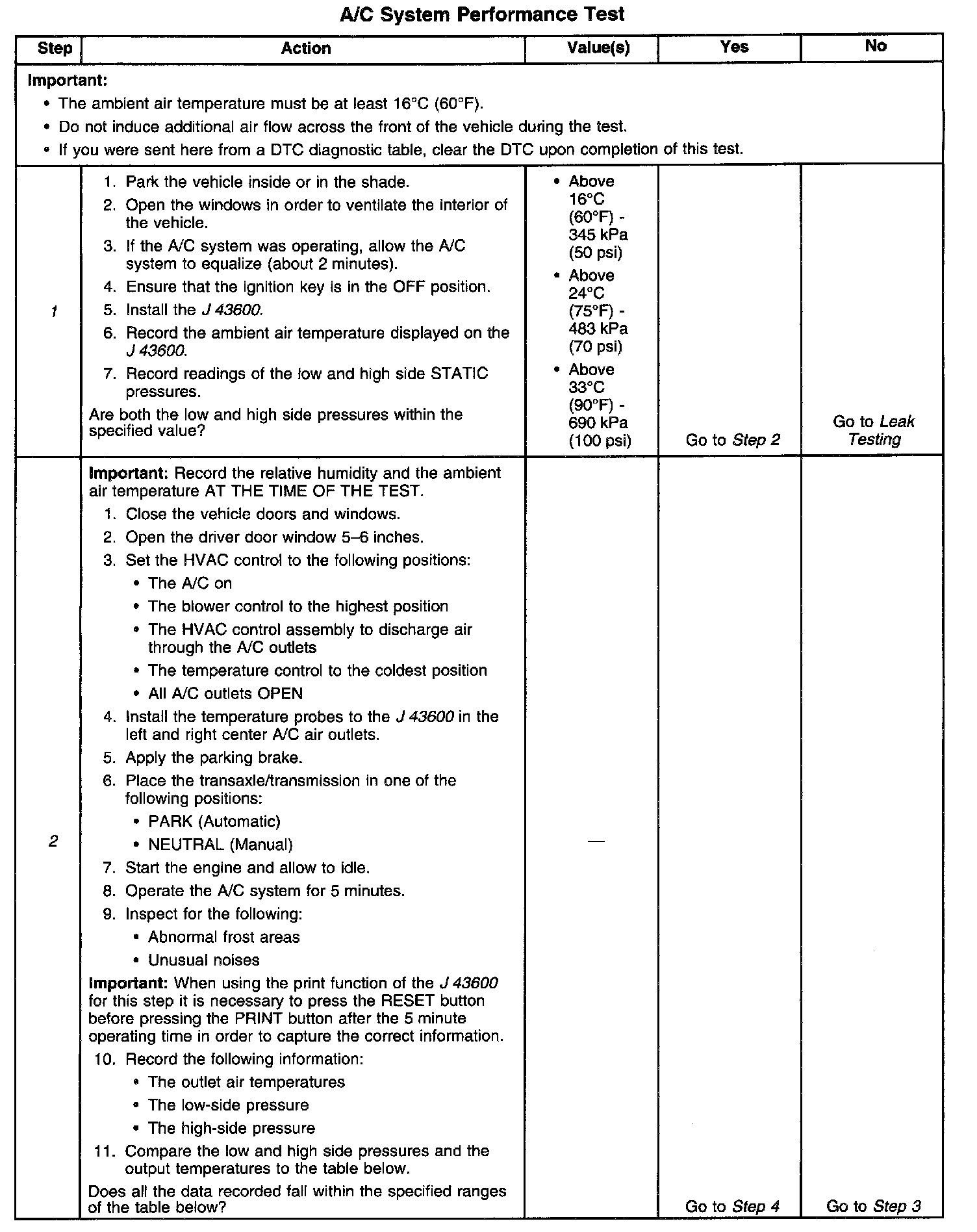 A/C SYSTEM PERFORMANCE TESTThe following test measures the A/C system operating efficiency by comparing: