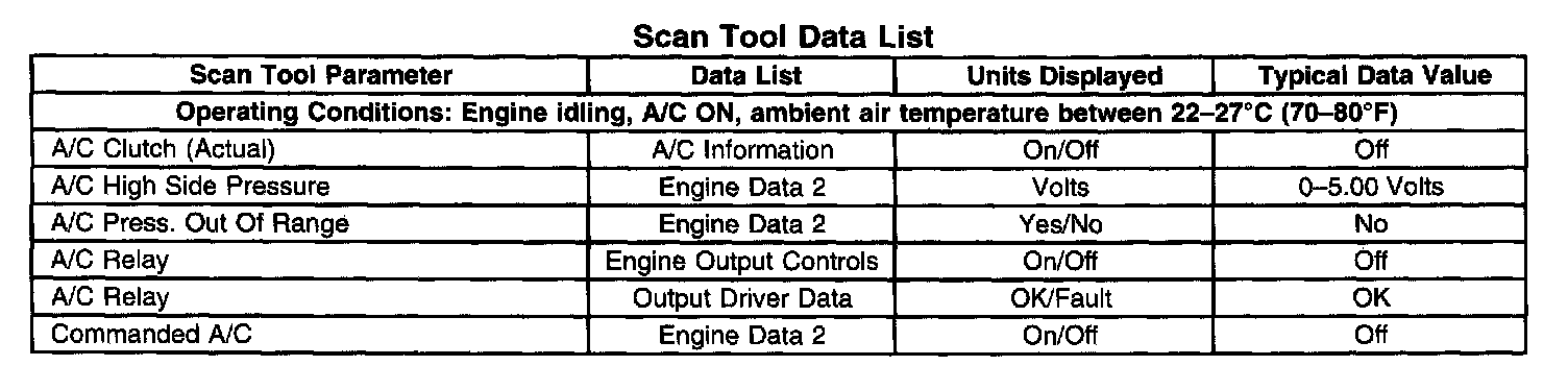 Scan Tool Data List: