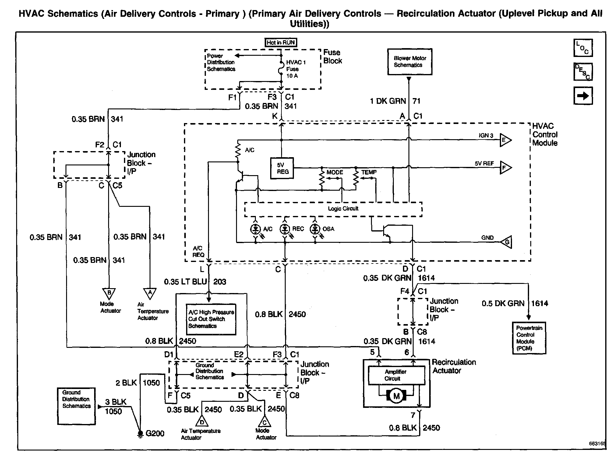 HVAC Schematics: Air Delivery Controls - Primary (Primary Air Delivery Controls - Recirculation Actuator (Uplevel Pickup And All Utilities)):