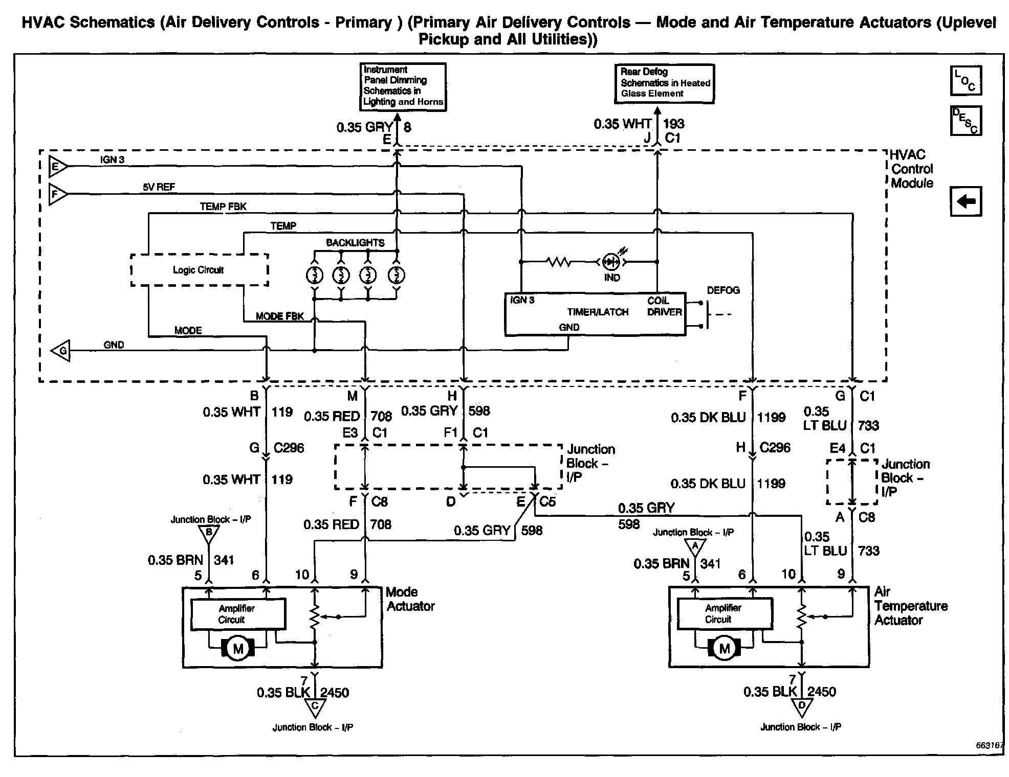 HVAC Schematics: Air Delivery Controls - Primary (Primary Air Delivery Controls - Mode And Temperatures Actuators (Uplevel Pickup And All Utilities)):