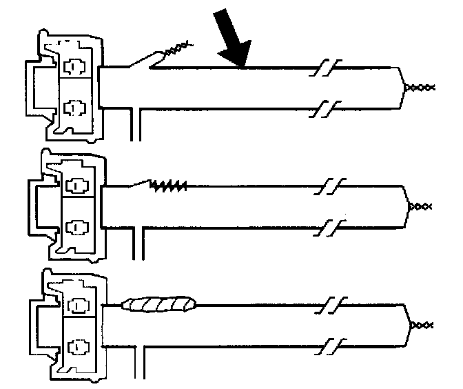 65. Twist together 1 end of each wire of the RF side impact module on the passenger side deployment harness in order to short the wires.