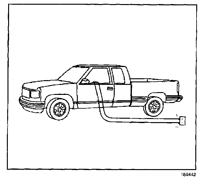 43. Out the RF side impact module harness connector out of the vehicle leaving at least 16 cm (6 in) of wire at the connector.