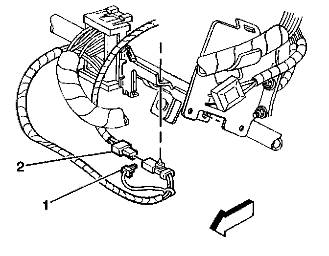5. Disconnect the inflatable restraint steering wheel module connector (2) located next to the steering column.