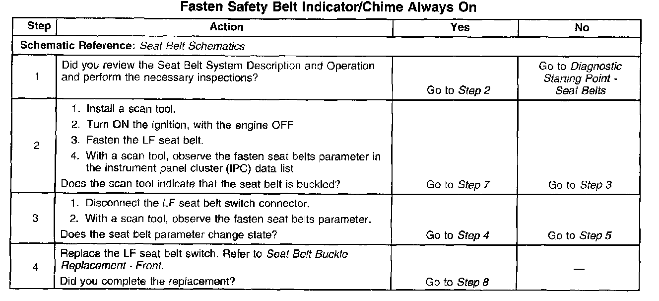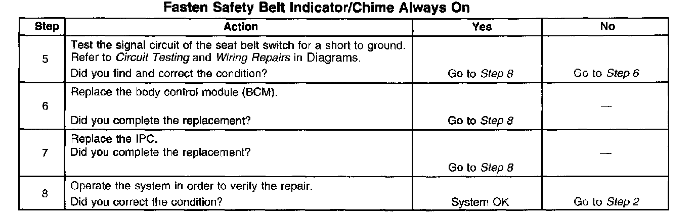 Fasten Safety Belt Indicator/Chime Always On