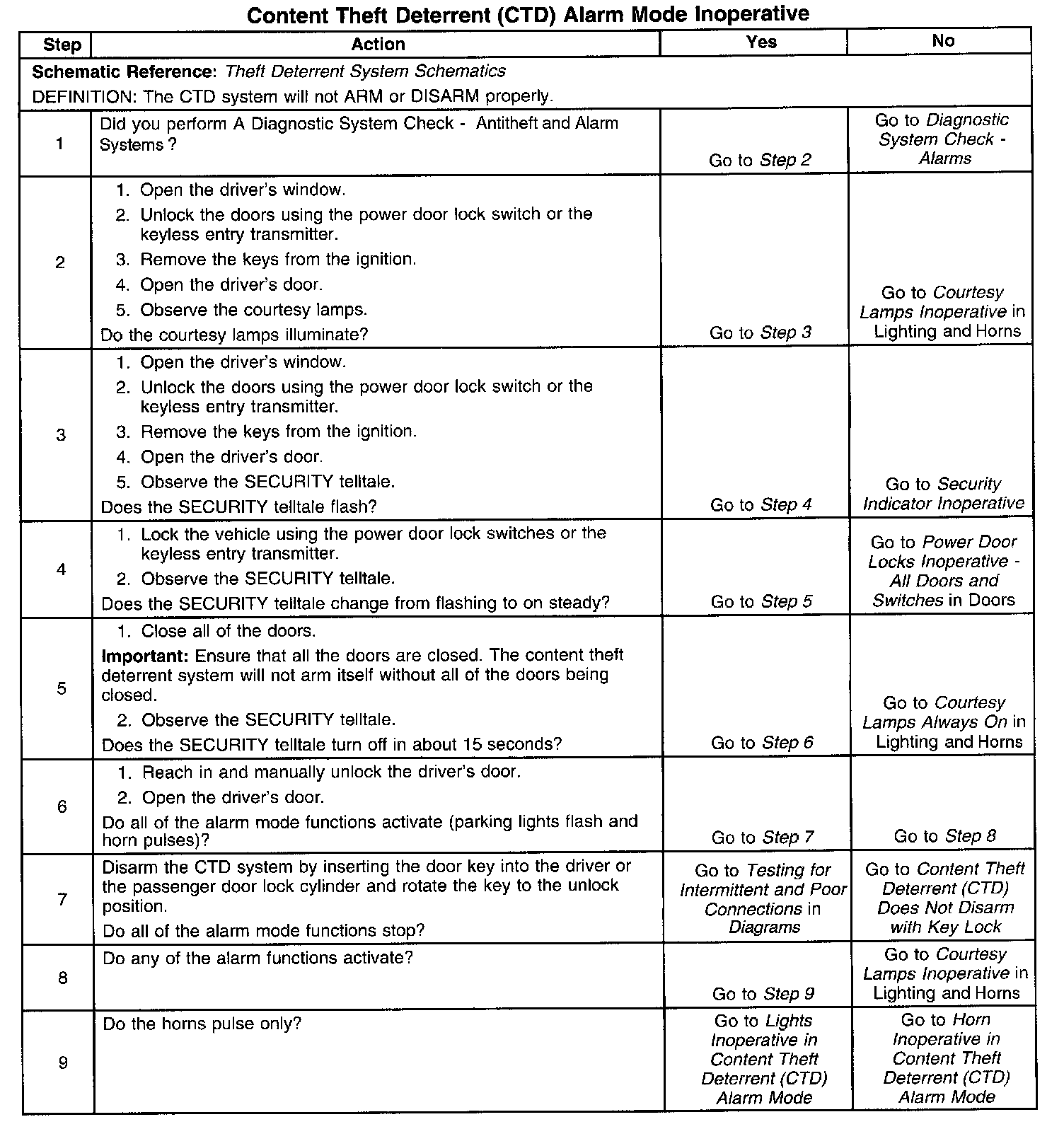 Alarm Mode Inoperative - Content Theft Deterrent (CTD)