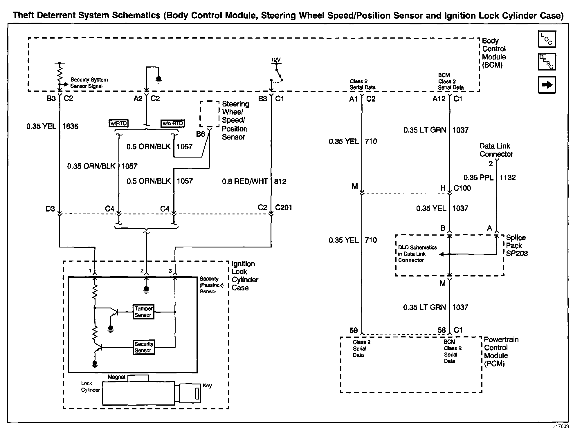 Theft Deterrent System Schematics: Body Control Module, Steering Wheel Speed/Position Sensor and Ignition Lock Cylinder Case: