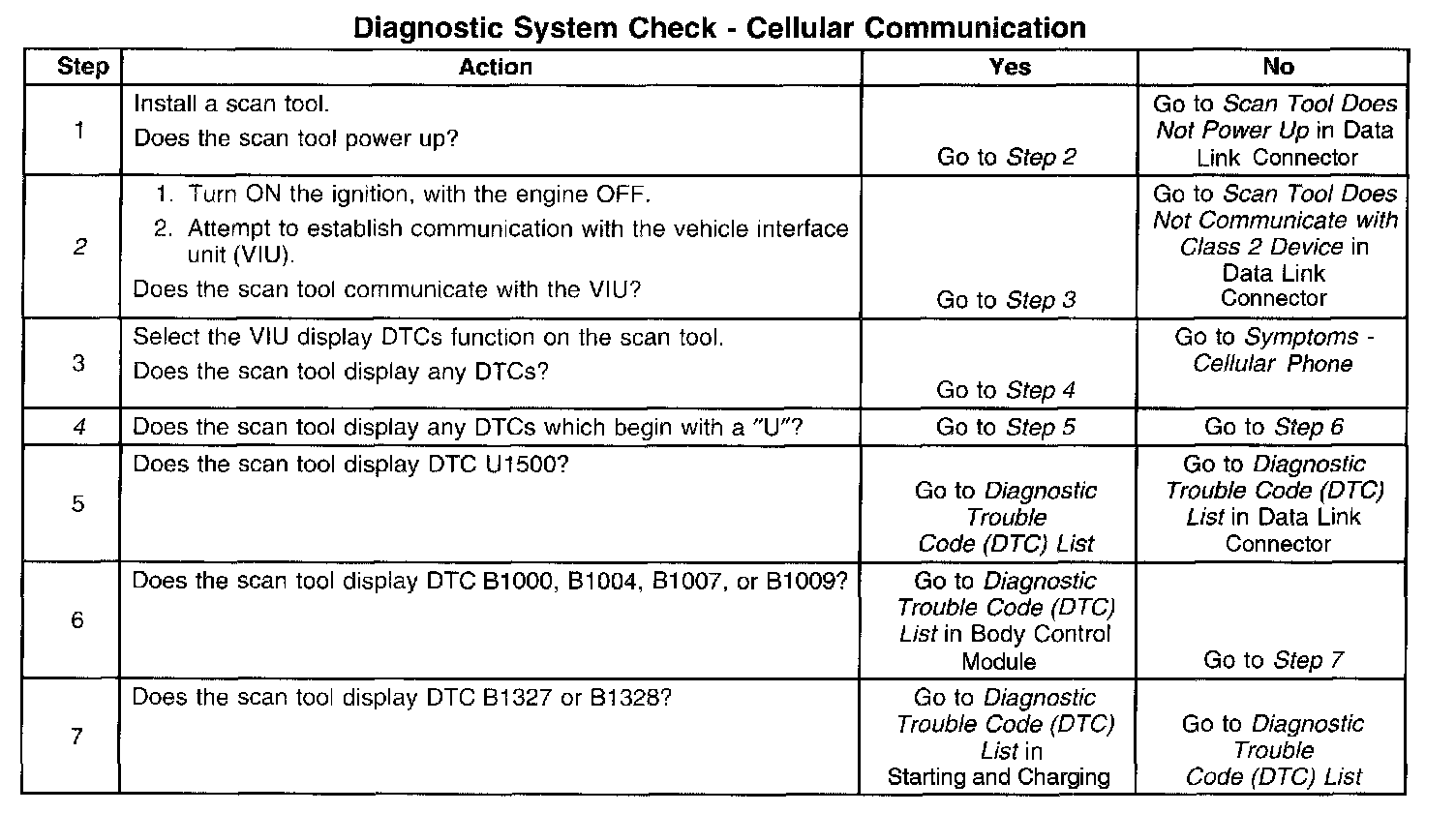 2. Lack of communication may be due to a partial malfunction or a total malfunction of the class 2 serial data circuit. The specified procedure will determine the condition.