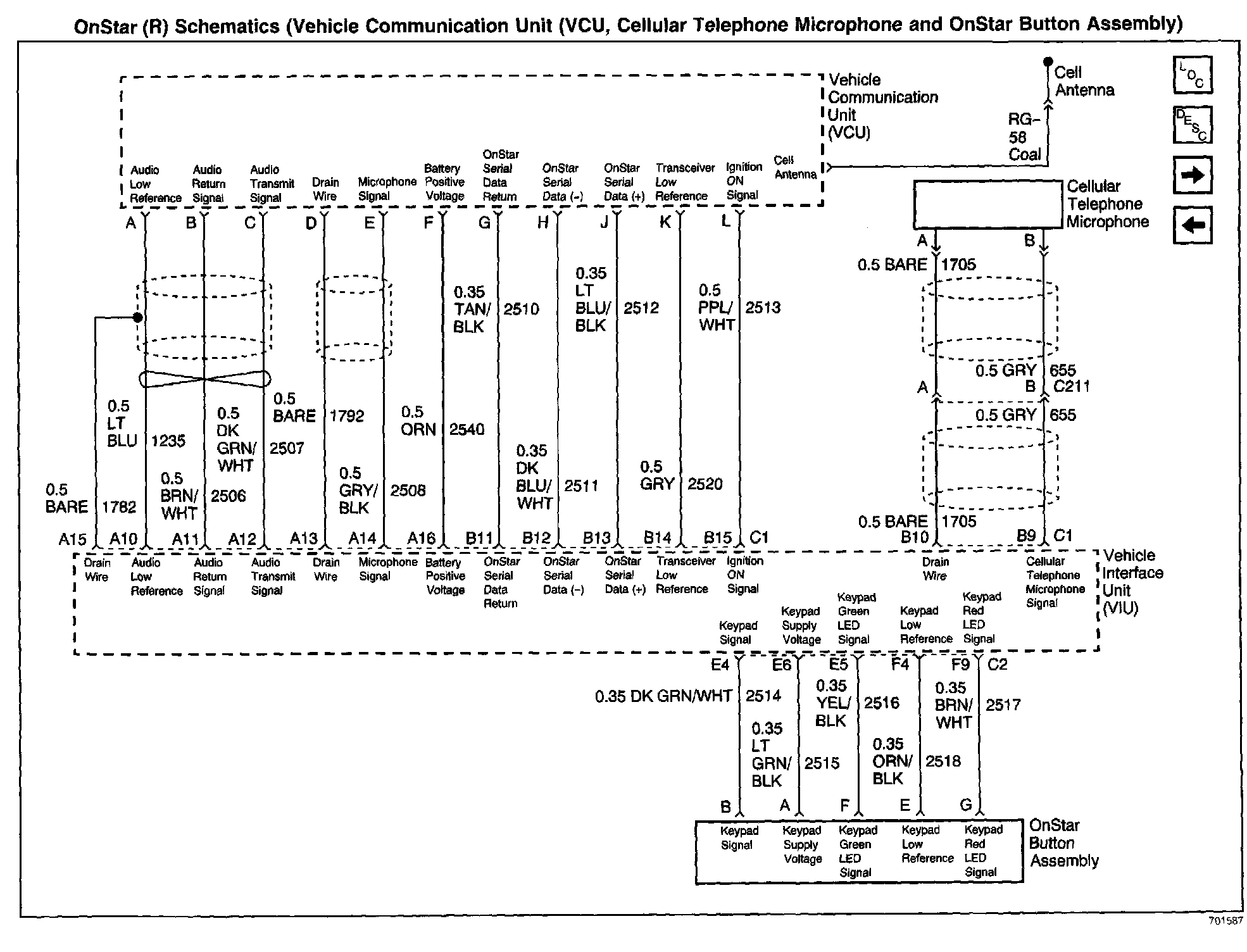 Onstar (R) Schematics: Vehicle Communication Unit (VCU, Cellular Telephone Microphone And Onstar Button Assembly):