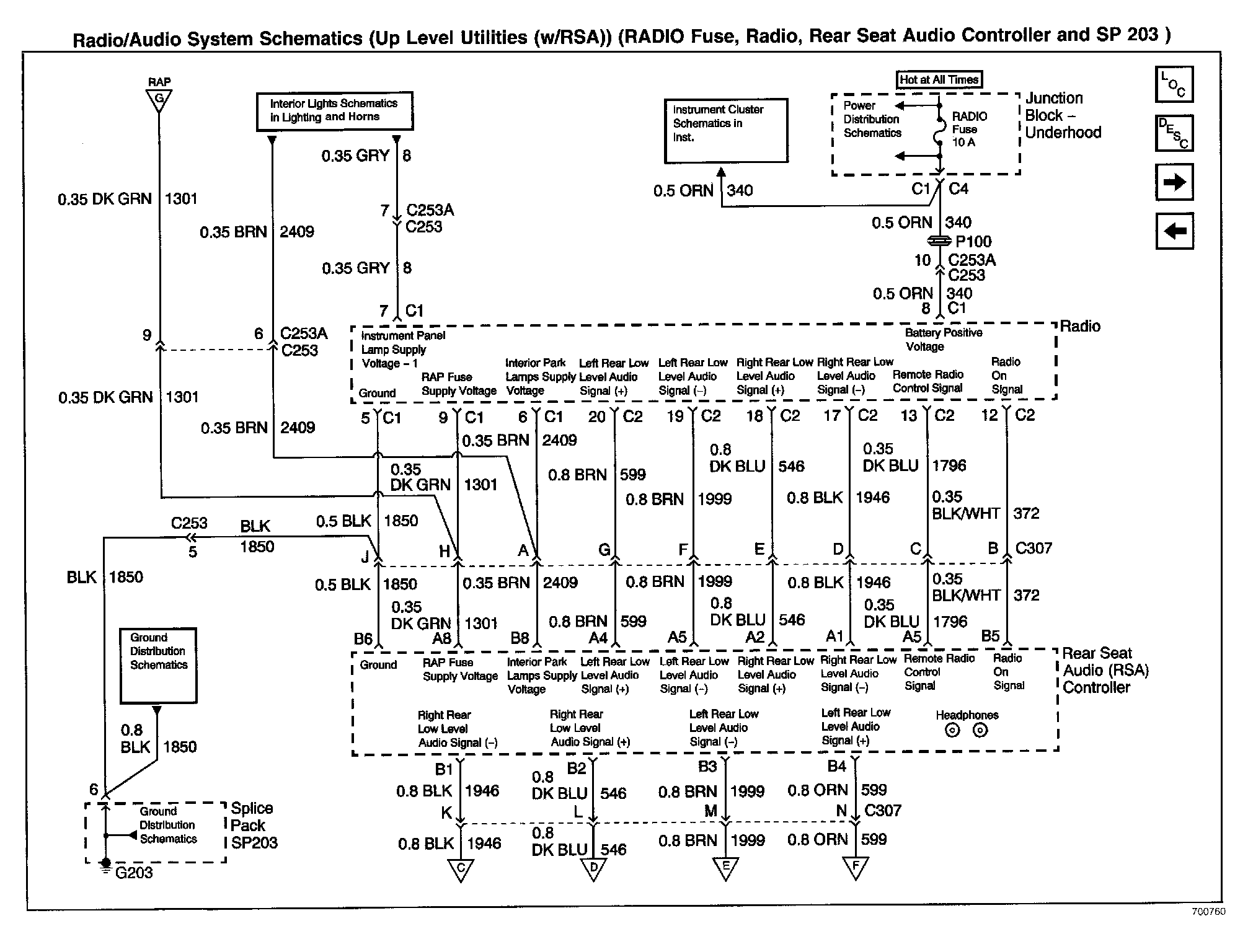 Radio/Audio System Schematics: Up Level Utilities (W/RSA) (RADIO Fuse, Radio, Rear Seat Audio Controller And SP 203):