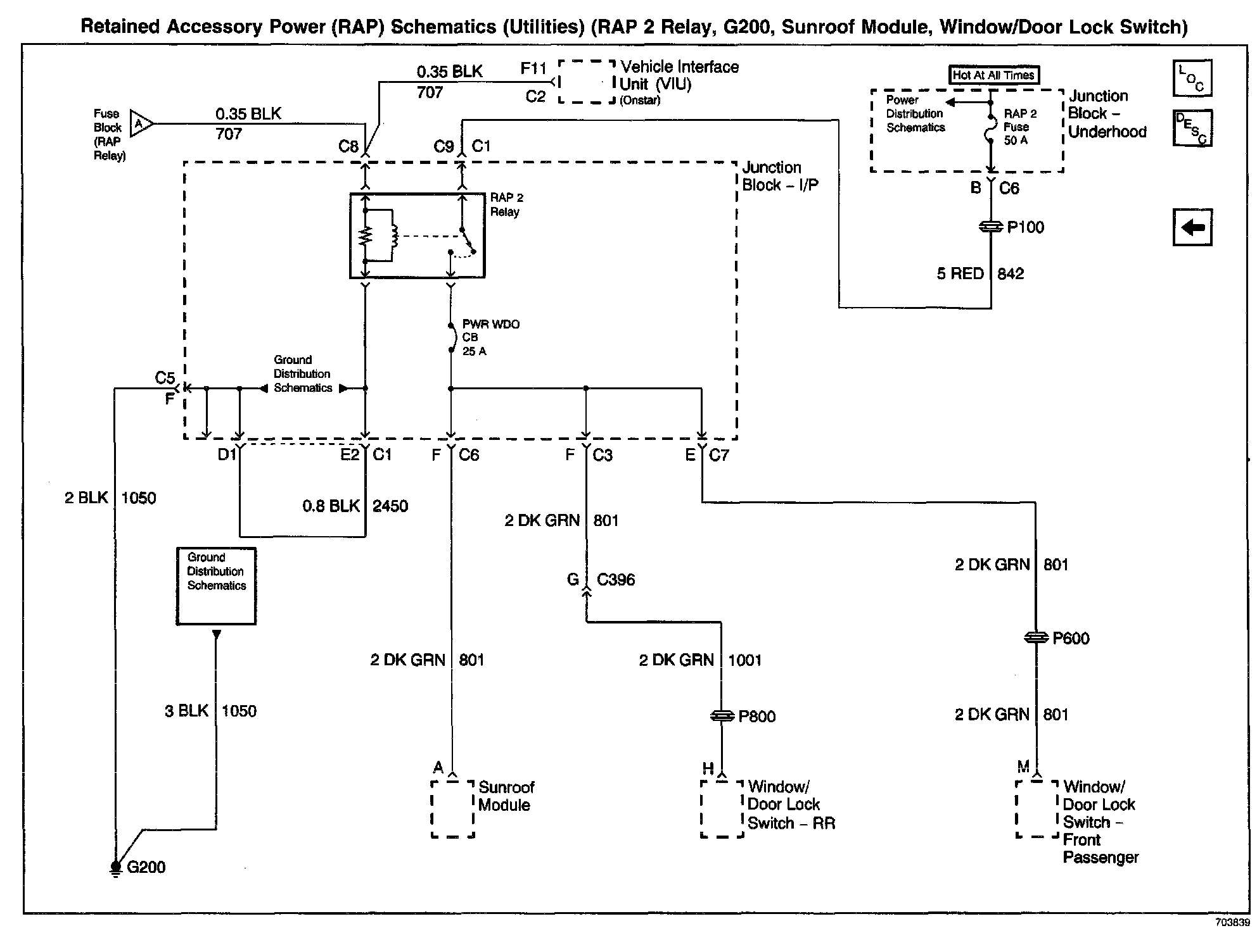 Retained Accessory Power (RAP) Schematics: Utilities (RAP 2 Relay, G200, Sunroof Module, Window/Door Lock Switch):
