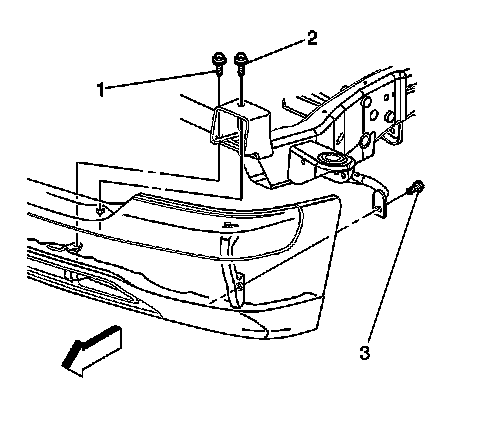 3. Remove the retaining bolts (1, 2) from the front bumper.