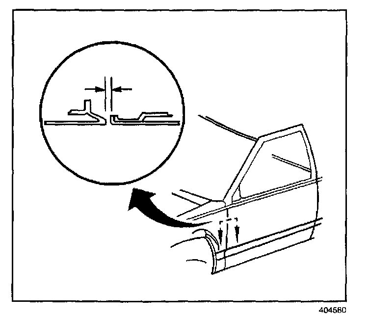 8. Adjust the door surfaces so that the door surfaces are flush with the other panels to 1.0 mm (0.04 in).