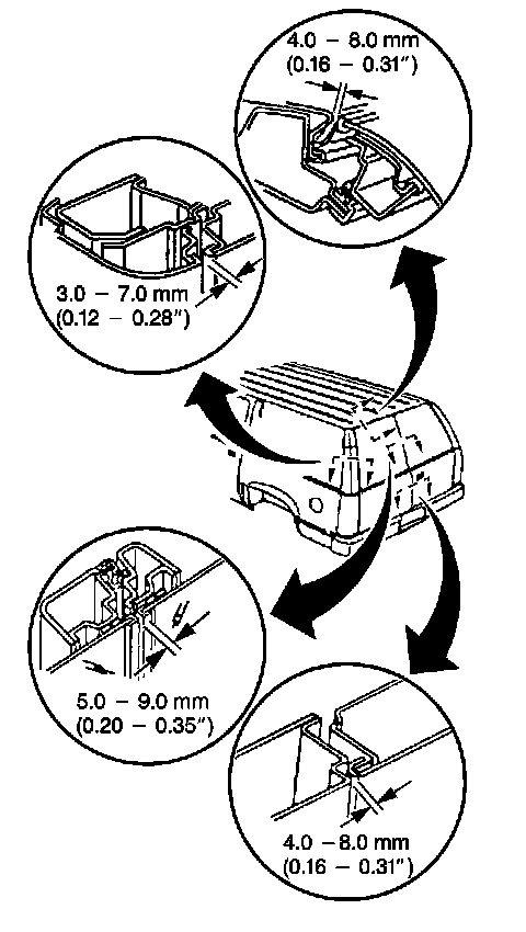 5. Adjust the gap between the door glass and the roof panel to 4.0-8.0 mm (0.16-0.31 in).