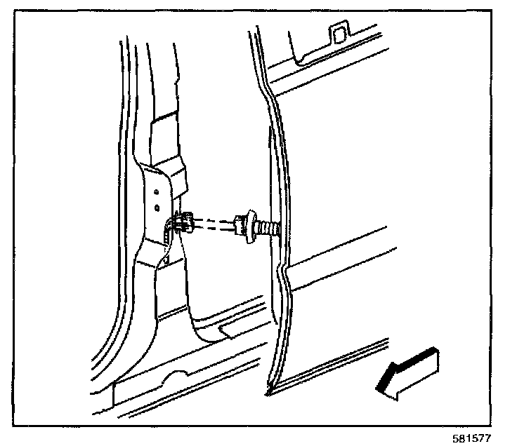 3. Install the door check link bolt to the pillar side.