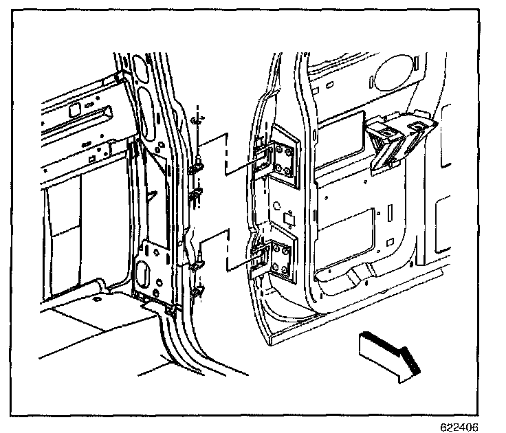 1. Open the door and remove the door trim panel. Refer to Trim Panel Replacement - Side Access.